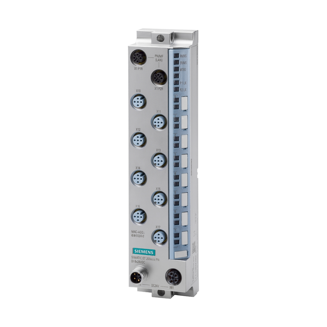 • Thông số kỹ thuật: SIMATIC ET 200eco PN, CM 8x IO-Link + DIQ 8x 24 V DC/0.5 A, M12-L, 8x M12, 8x port class A channel diagnostics, shared device, with 2 controllers, prioritized startup, MRP, S2 redundancy, I&M0…3, multi-fieldbus, PN IO, EtherNet/IP, Modbus TCP, degree of protection IP67 / IP69K