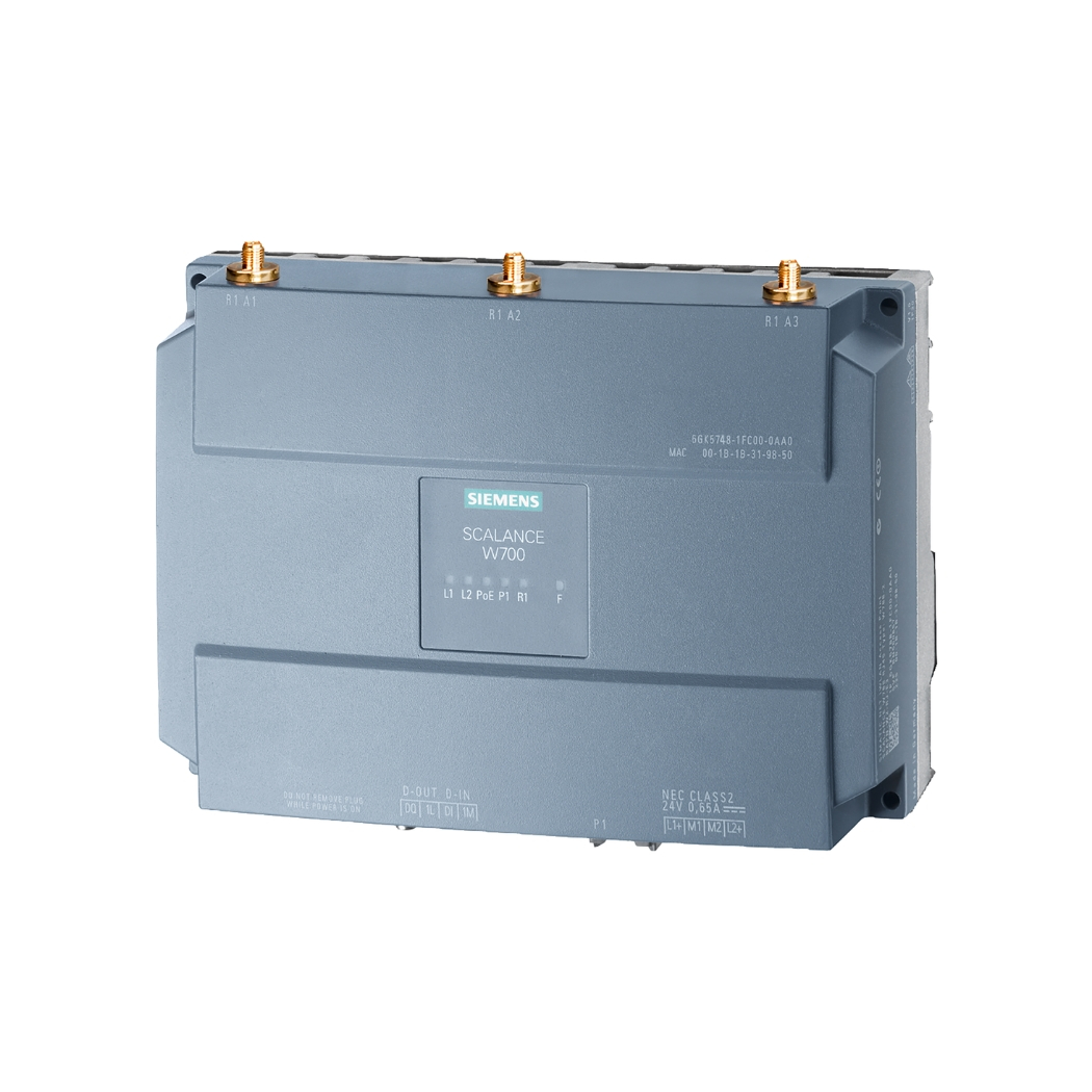 • Thông số kỹ thuật: product announced for discontinuation; IWLAN client, SCALANCE W748-1 RJ45, 1 radio, 3 R-SMA antenna port, iFeatures support via KEY-PLUG, IEEE 802.11a/b/g/h/n, 2.4/5GHz, gross 450 Mbps per radio, 1x RJ45 max. 1 Gbps, PoE, redundant 24 V DC, joint block, IP30, temp: -20 …+60 °C, WPA2/802.11i/e, signaling contact observe national approvals! cert ID: RAPN-W1-RJ-E3, includes: MPCIE-R1-ABGN-U3, scope of delivery: manuals on CD-ROM, German/English, 2x joint blocks; for operation in the USA.