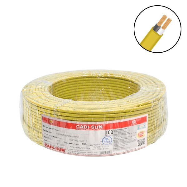 Dây điện 2 lõi Cadisun VCTFK-2x1mm2–300V, 500V (Vàng)